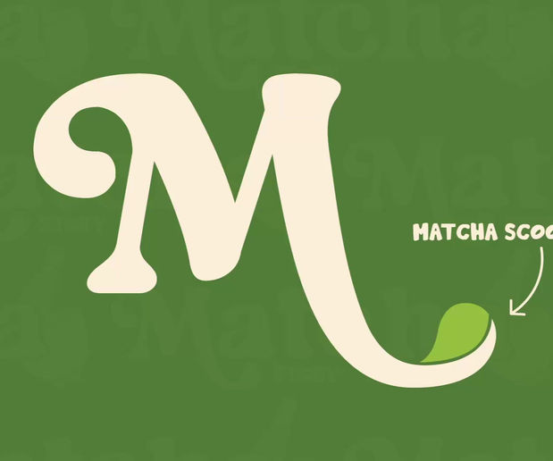 Logo: The primary logo combines playful typography with matcha iconography. A whisk is integrated into the wordmark, emphasizing tradition while keeping it fun and inviting.